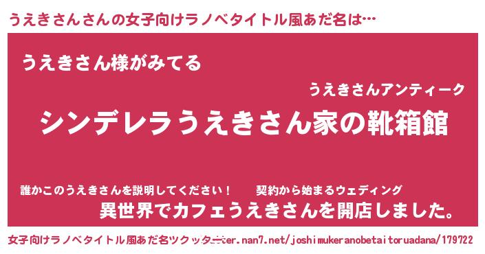 | 男性向けラノベタイトル風あだ名 | 『緋弾のウエキサン』 |