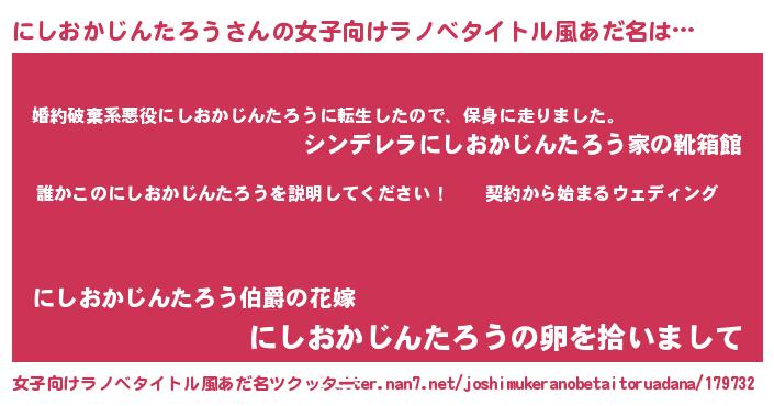 | 男性向けラノベタイトル風あだ名 | 『ニシオカジンタロウアートオンライン』 |