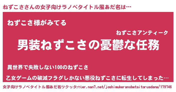 | 男性向けラノベタイトル風あだ名 | 『うちのねずこさが世界を掌握している!』 |