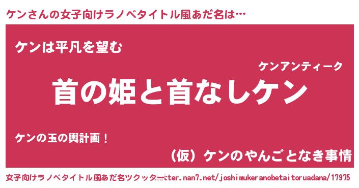 | 男性向けラノベタイトル風あだ名 | 『はたらくケンさま!』『ケンの憂鬱』 |