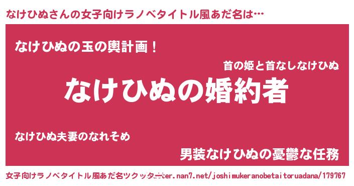 | ヒーロー風カッコイイあだ名 | 『ウルトラなけひぬマン』『ネオナケヒヌ』 |