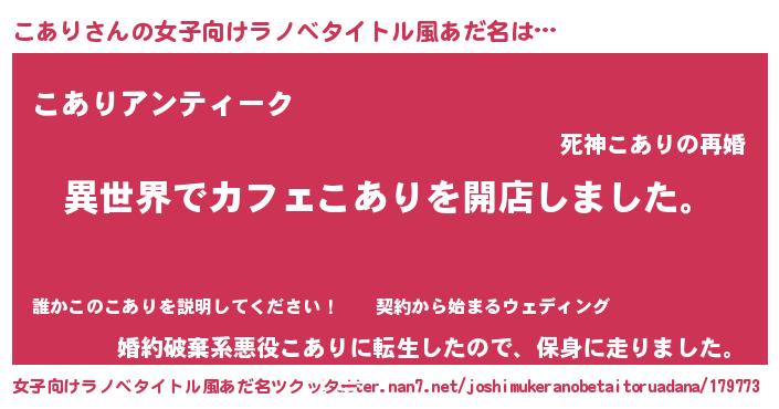 | 意味不明あだ名 | 『永久保存こあり』『自称こあり』 |