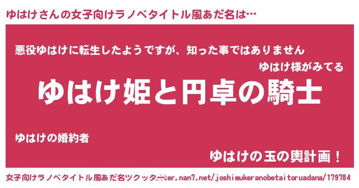 | 胡散臭い通販商品みたいなあだ名 | 『モテモテ間違いなし水晶球…その名も「ゆはけ」』 |