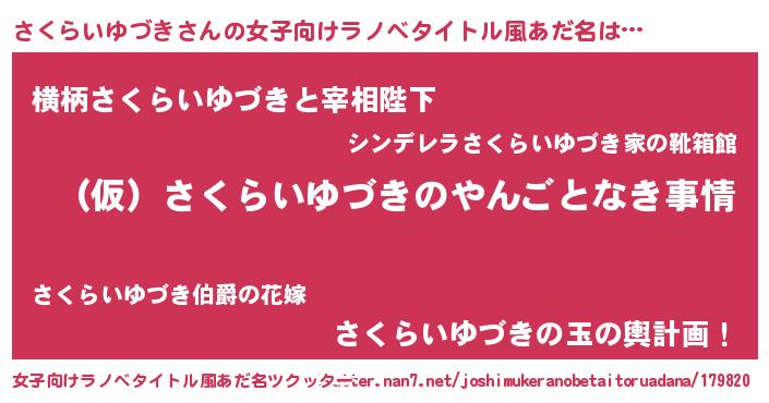 | 伝説のあだ名 | 『伝説のスナイパーさくらいゆづき』 |