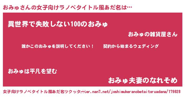 | 胡散臭い通販商品みたいなあだ名 | 『億万長者になれるブレスレット…その名も「おみゅ」』 |