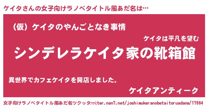 | 男性向けラノベタイトル風あだ名 | 『緋弾のケイタ』『ケイタの憂鬱』 |