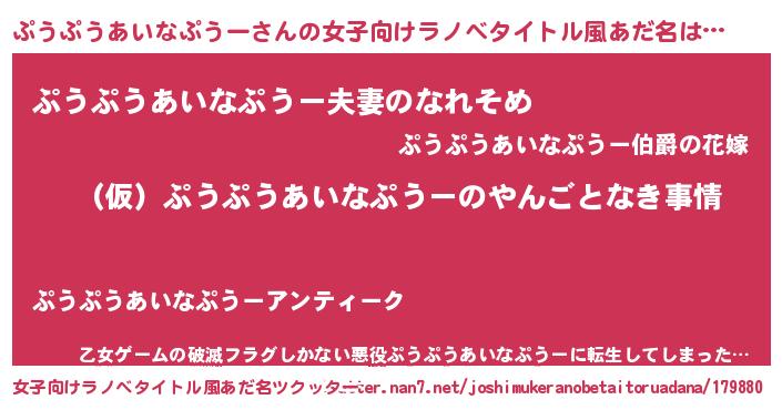 | 男性向けラノベタイトル風あだ名 | 『ぷうぷうあいなぷうーの憂鬱』 |