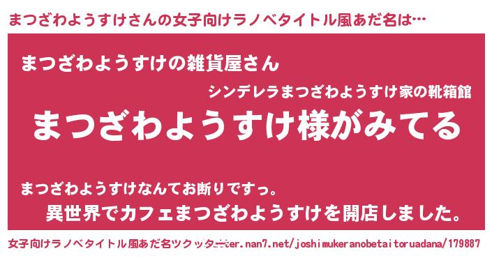 | 男性向けラノベタイトル風あだ名 | 『まつざわようすけの嫁は女の子じゃないと思った?』 |