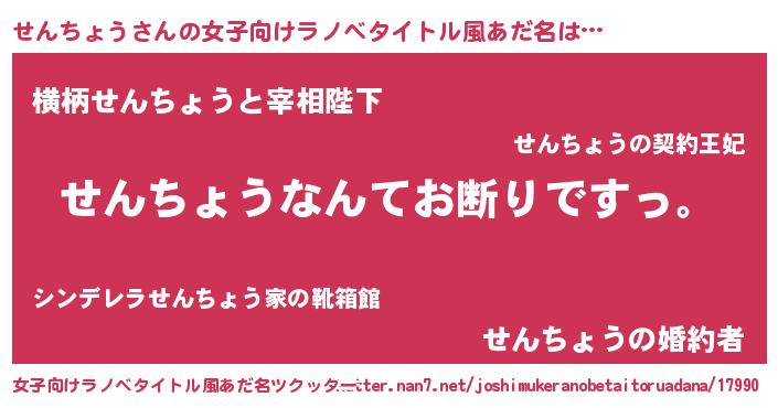 | ヘコむあだ名 | 『牛乳』『せんちょう(笑)』『せんを』 |