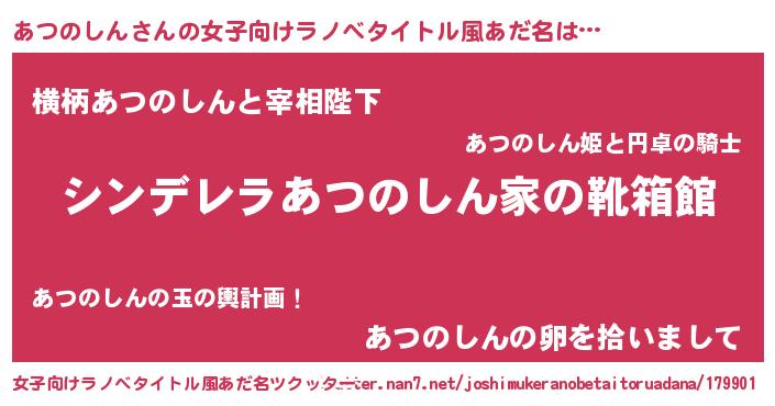 | 胡散臭い通販商品みたいなあだ名 | 『伝統あるサプリメント…その名も「あつのしん」』 |