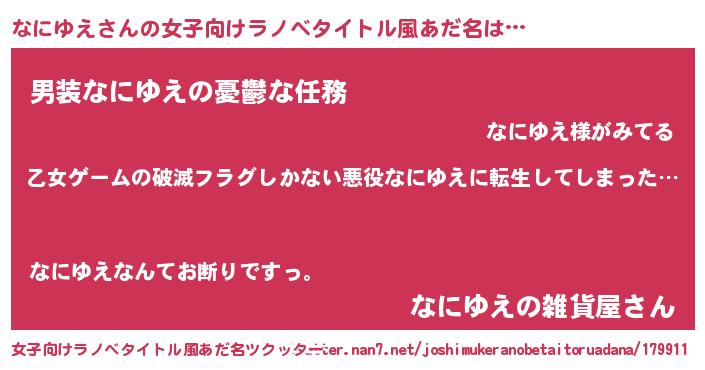 | 男性向けラノベタイトル風あだ名 | 『魔弾の王となにゆえ』 |