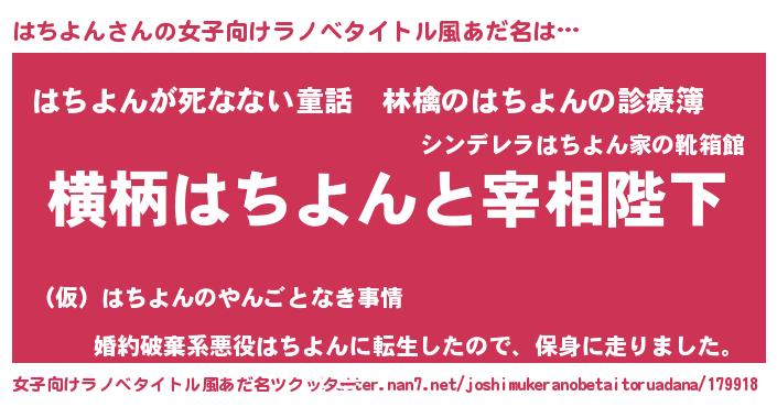 | 意味不明あだ名 | 『住所不定無職はちよん(10歳)』 |