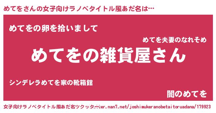 | ファンタジー風あだ名 | 『エターナルメテヲー』『ゼメテトゥ』 |