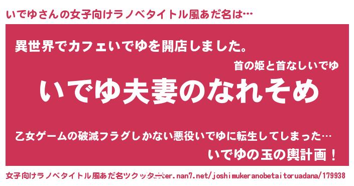| ヘコむあだ名 | 『いでゆ(小並感)』『いでもー』 |