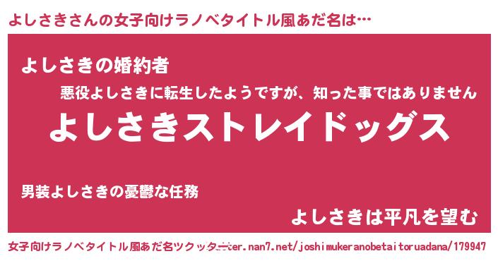 | ファンタジー風あだ名 | 『ゼヨシトゥ』『エターナルヨシサキー』 |