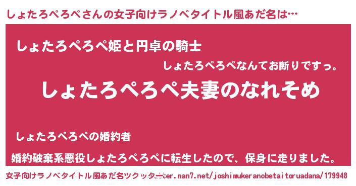 | 胡散臭い通販商品みたいなあだ名 | 『100人中100人が認めたマグネット磁石…その名も「しょたろぺろぺ」』 |