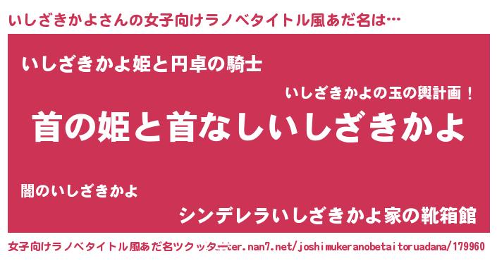 | 男性向けラノベタイトル風あだ名 | 『はたらくいしざきかよさま!』 |
