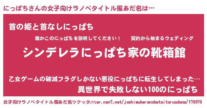 | 意味不明あだ名 | 『永久保存にっぱち』『ペロリンにっぱち』 |