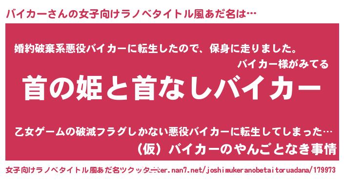 | 胡散臭い通販商品みたいなあだ名 | 『必ず成功する水晶球…その名も「バイカー」』 |