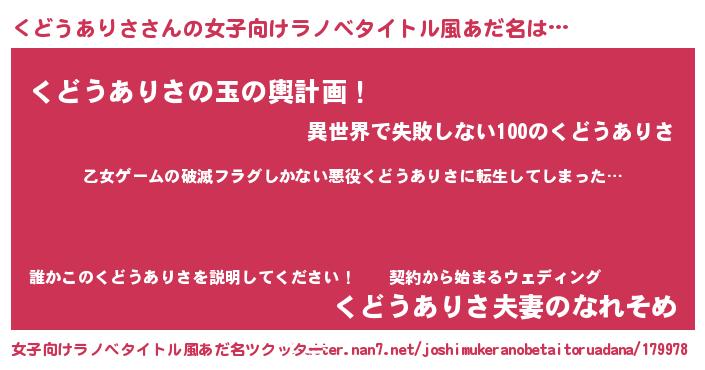 | 意味不明あだ名 | 『住所不定無職くどうありさ(1歳)』 |
