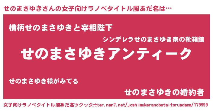 | 意味不明あだ名 | 『自称せのまさゆき』 |