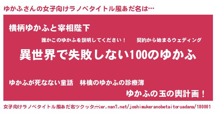 | 男性向けラノベタイトル風あだ名 | 『ゆかふという概念が存在しない退屈な世界 』 |