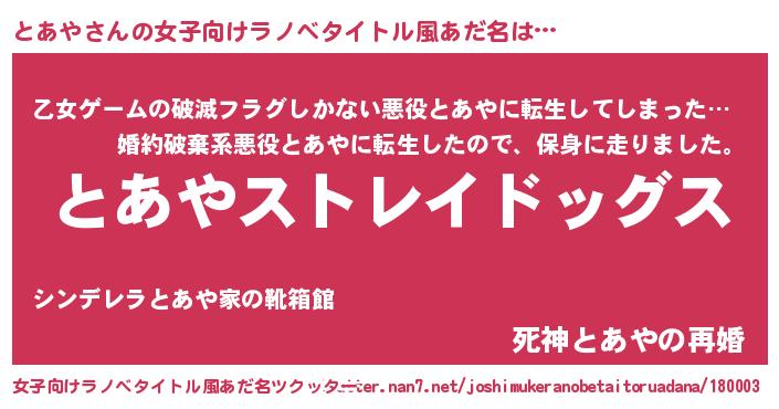 | 胡散臭い通販商品みたいなあだ名 | 『芸能人もオススメするアガリクス…その名も「とあや」』 |