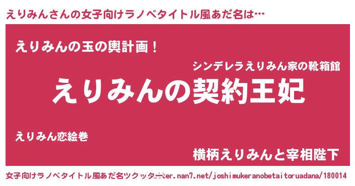 | 意味不明あだ名 | 『永久保存えりみん』『ペロリンえりみん』 |