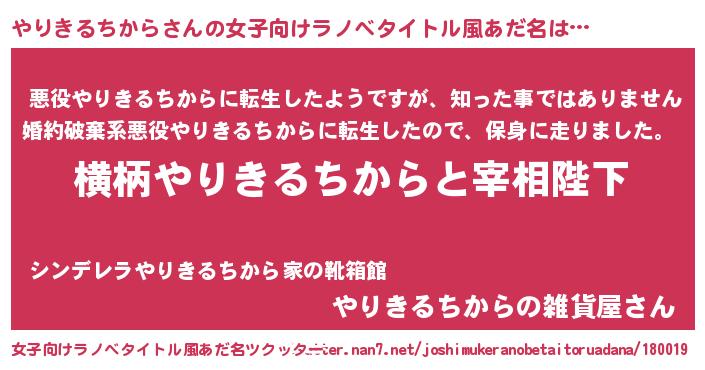 | 意味不明あだ名 | 『住所不定無職やりきるちから(43歳)』 |