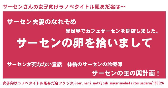 | ヘコむあだ名 | 『サー太郎』『サーセン(小並感)』 |