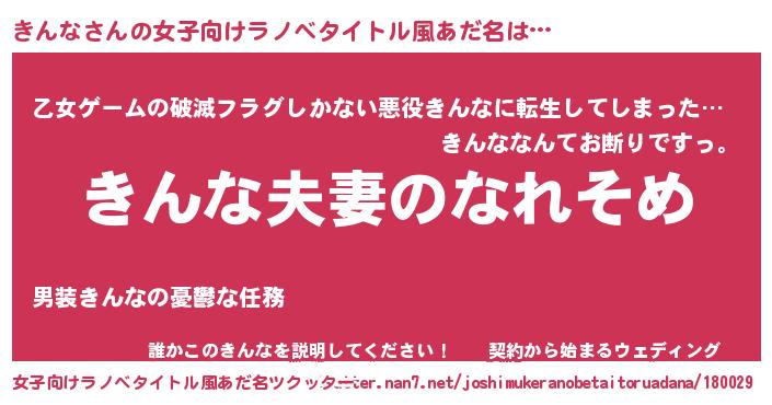 | 男性向けラノベタイトル風あだ名 | 『おまえをオタクにしてやるから、俺をきんなにしてくれ! 』 |