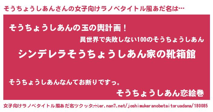 | ヘコむあだ名 | 『そうちょうしあん(笑)』『そうふぇ~』 |