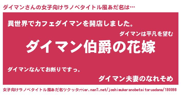 | 男性向けラノベタイトル風あだ名 | 『やはりダイマンの青春ラブコメはまちがっている 』 |