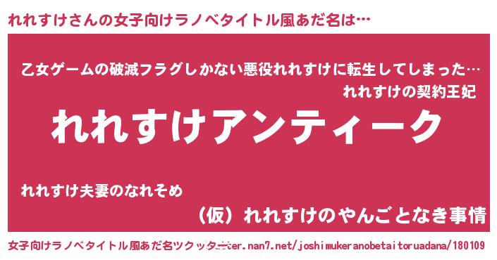 | 男性向けラノベタイトル風あだ名 | 『魔法科高校のれれすけ』 |