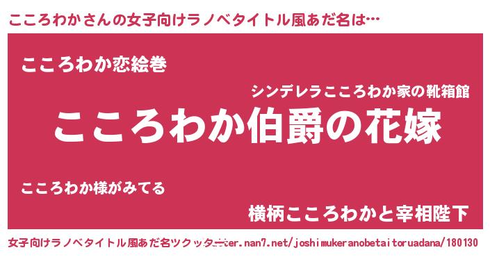 | 男性向けラノベタイトル風あだ名 | 『やはりこころわかの青春ラブコメはまちがっている 』 |