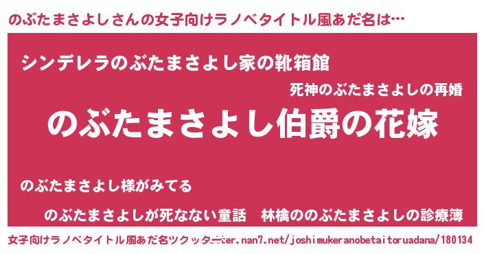 | 男性向けラノベタイトル風あだ名 | 『やはりのぶたまさよしの青春ラブコメはまちがっている 』 |