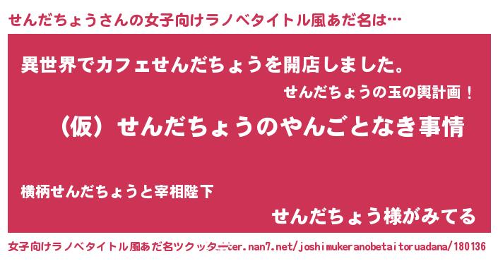 | 男性向けラノベタイトル風あだ名 | 『せんだちょうの憂鬱』 |