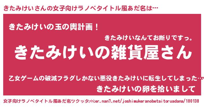 | 男性向けラノベタイトル風あだ名 | 『やはりきたみけいの青春ラブコメはまちがっている 』 |