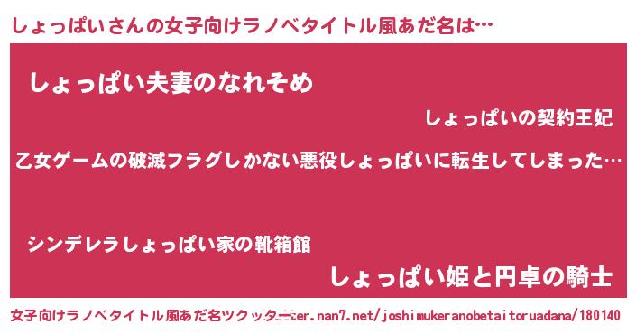 | 男性向けラノベタイトル風あだ名 | 『この素晴らしい世界にしょっぱいを!』 |