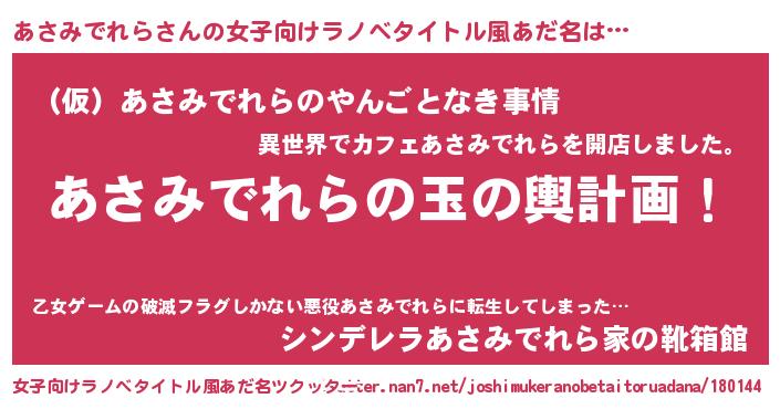 | 伝説のあだ名 | 『封印されし竜騎士あさみでれら』 |