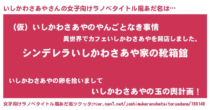 | ヘコむあだ名 | 『いしふぇ~』『いしかわさあや(小並感)』 |