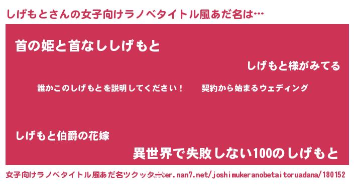 | ピコ太郎風あだ名 | 『シコ八郎』『ピコシ郎』『シゲ十郎』 |