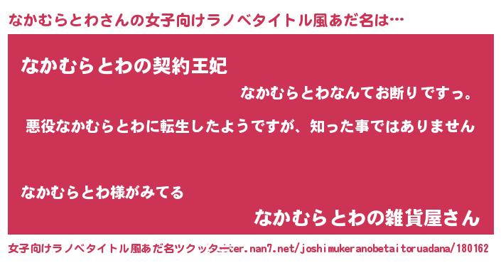 | 意味不明あだ名 | 『住所不定無職なかむらとわ(2歳)』 |