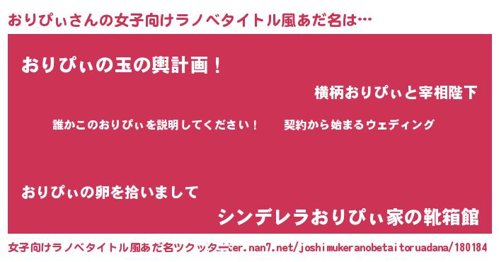 | 男性向けラノベタイトル風あだ名 | 『オリピィアートオンライン』 |