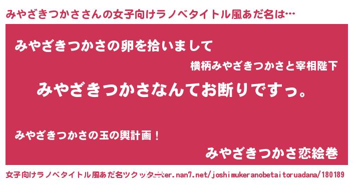| 意味不明あだ名 | 『自称みやざきつかさ』 |