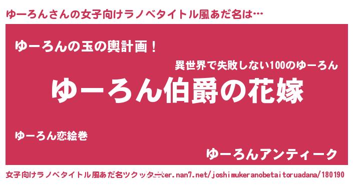 | 男性向けラノベタイトル風あだ名 | 『やはりゆーろんの青春ラブコメはまちがっている 』 |