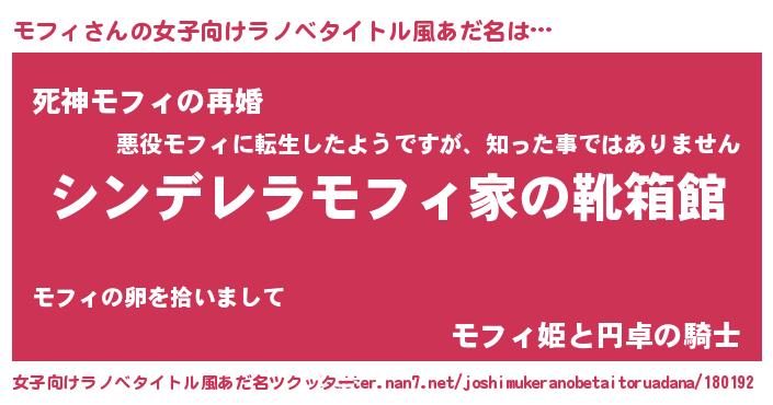 | 自動車の名前っぽいあだ名 | 『フェモーフ』『モンR』『モフティマ』 |
