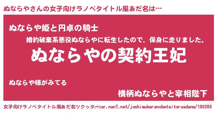 | 胡散臭い通販商品みたいなあだ名 | 『来世でも幸せになれる水素水…その名も「ぬならや」』 |