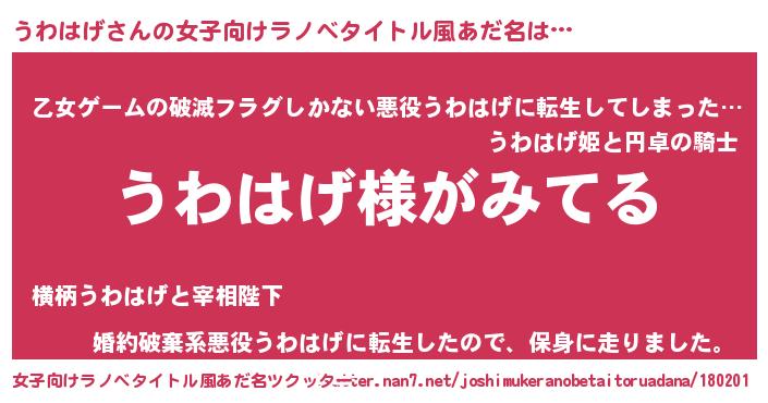 | 胡散臭い通販商品みたいなあだ名 | 『全米が絶賛したサプリメント…その名も「うわはげ」』 |