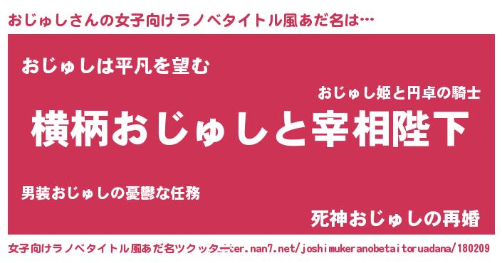 | 男性向けラノベタイトル風あだ名 | 『おじゅしに滅ぼされるだけの簡単なお仕事です』 |